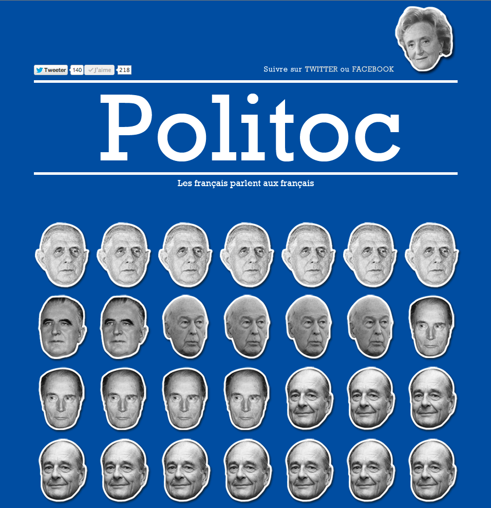 Une interface web ludique présentant une série de visages appartenant aux personnalités marquantes de la de la 5ème République française : déclenchez, d'un simple clic sur leur visage, un de leur gimmick culte.