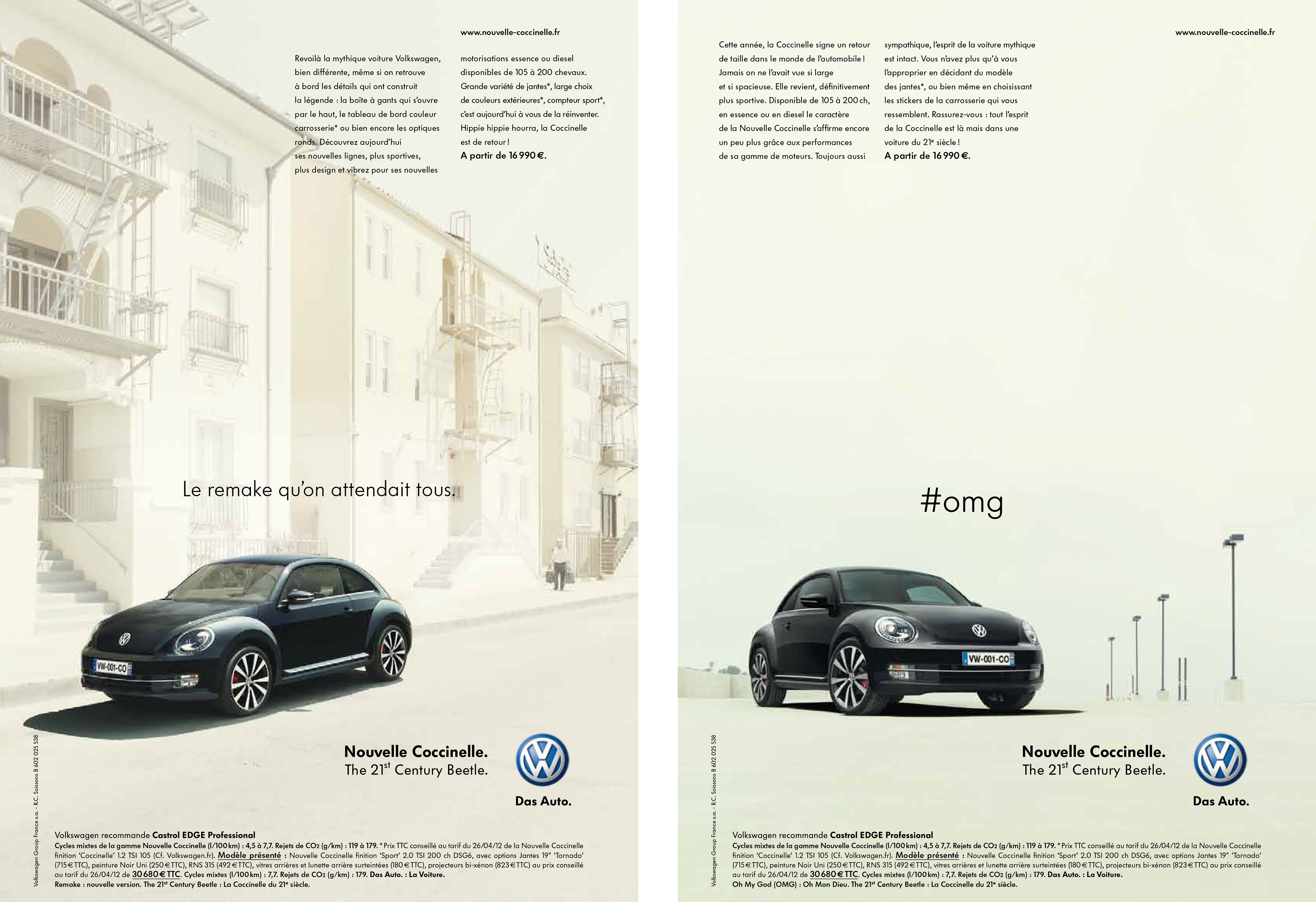 La campagne print fait également allusion à la coccinelle des 60's pour promouvoir la Nouvelle Coccinelle du 21ème siècle remis au goût du jour.