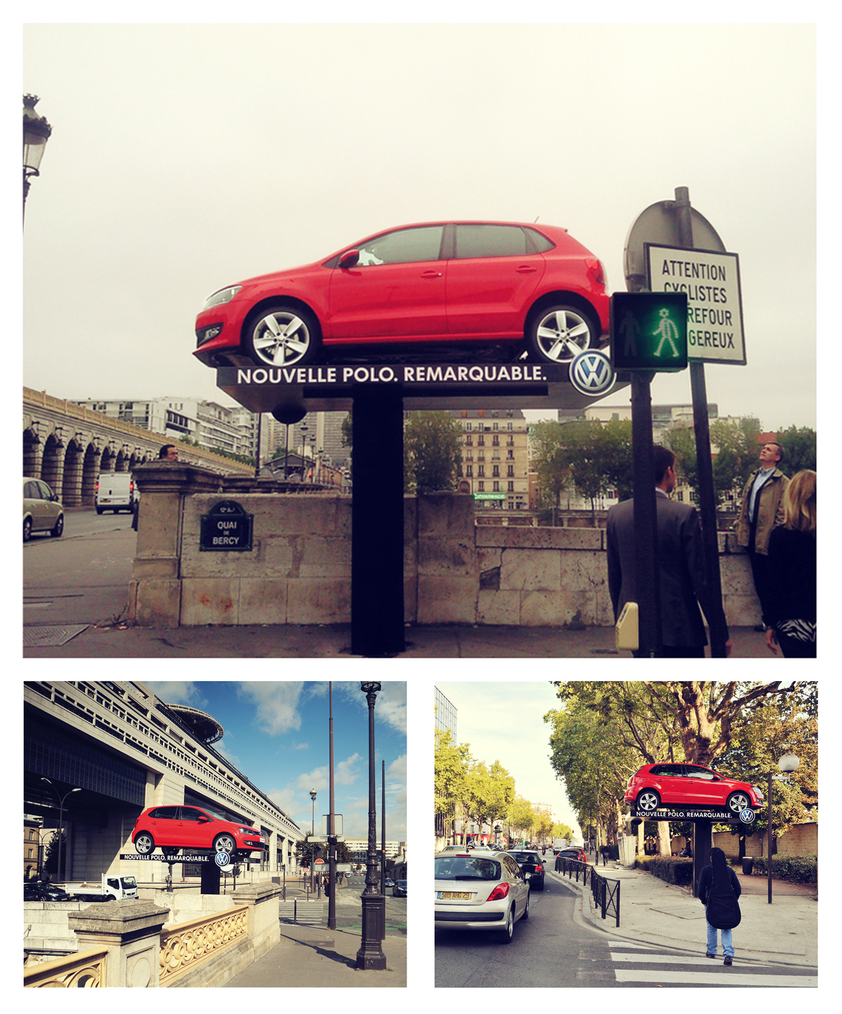 Réponse : Afficher de "vraies Polos" en transformant certaines affiches 4X3 placées à des endroits stratégiques en podiums permettant de soutenir une voiture (première mondiale JC Decaux Innovate).